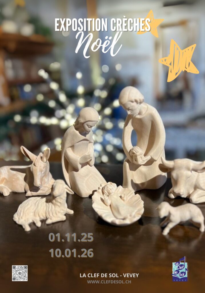 Du 1er novembre 2025 au 10 janvier 2026, venez découvrir l’exposition de Crêches de Noël à la librairie la Clef de Sol à Vevey !