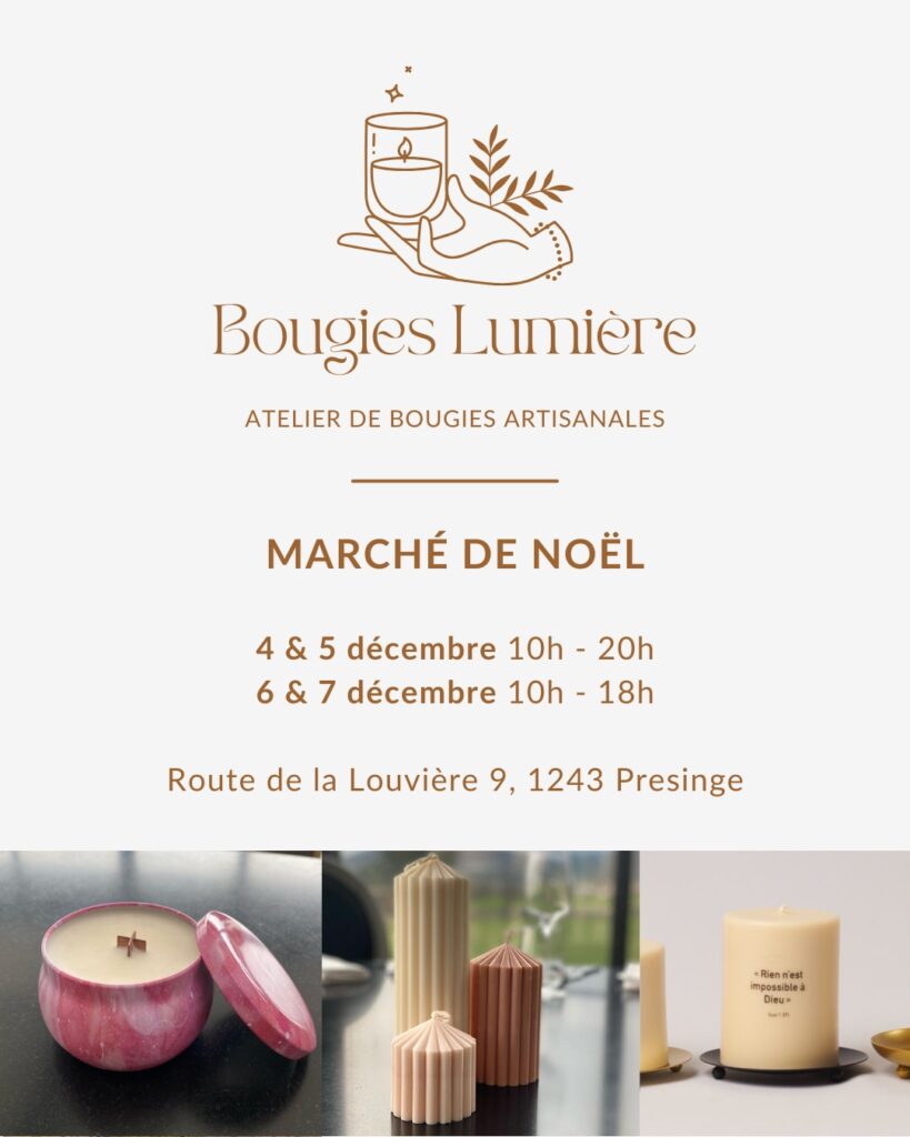 Découvrez les bougies by Bougies Lumière au marché de Noël à l’Auberge LE VILLAGE.