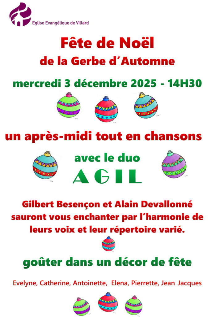 L’église Évangélique de Villard vous invite à une fête de Noël en musique avec le duo AGIL.