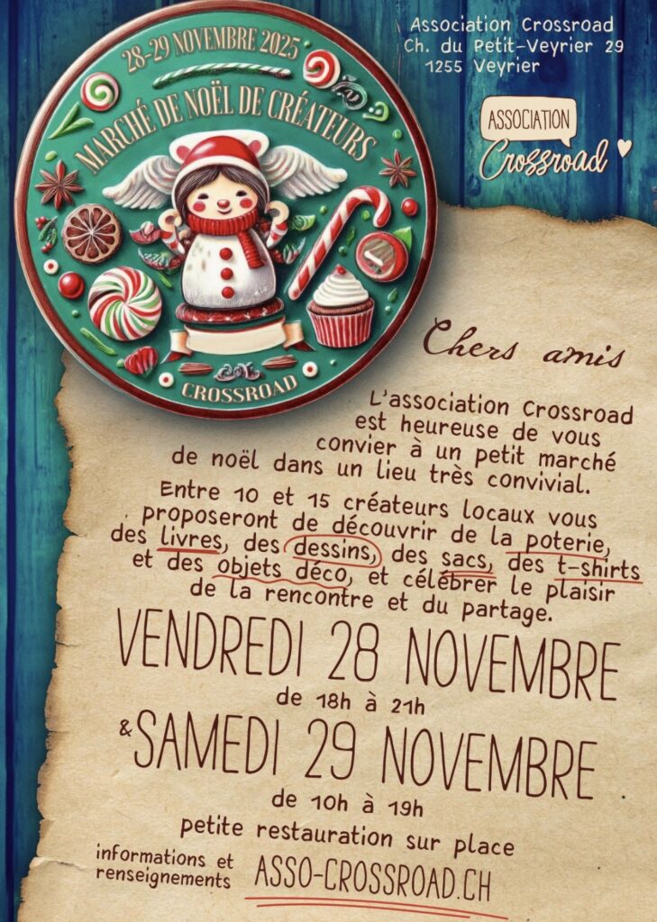 Le vendredi 28 novembre et le samedi 19 novembre, l’association Crossroad vous convie à un marché de Noël dans un lieu très convivial.