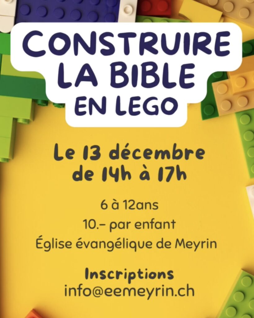L‘église Évangélique de Meyrin propose une activité de construction de la Bible en lego.