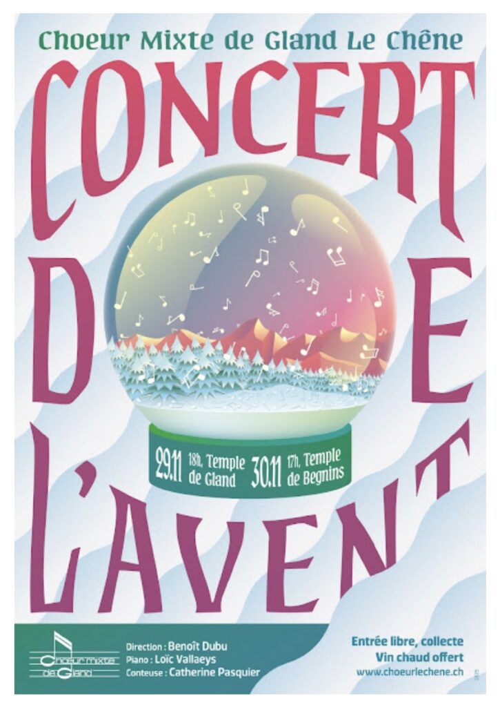 Le samedi 29 novembre et le 30 novembre 2025, participez au concert de Noël avec le chœur mixte de Gland Le Chêne !