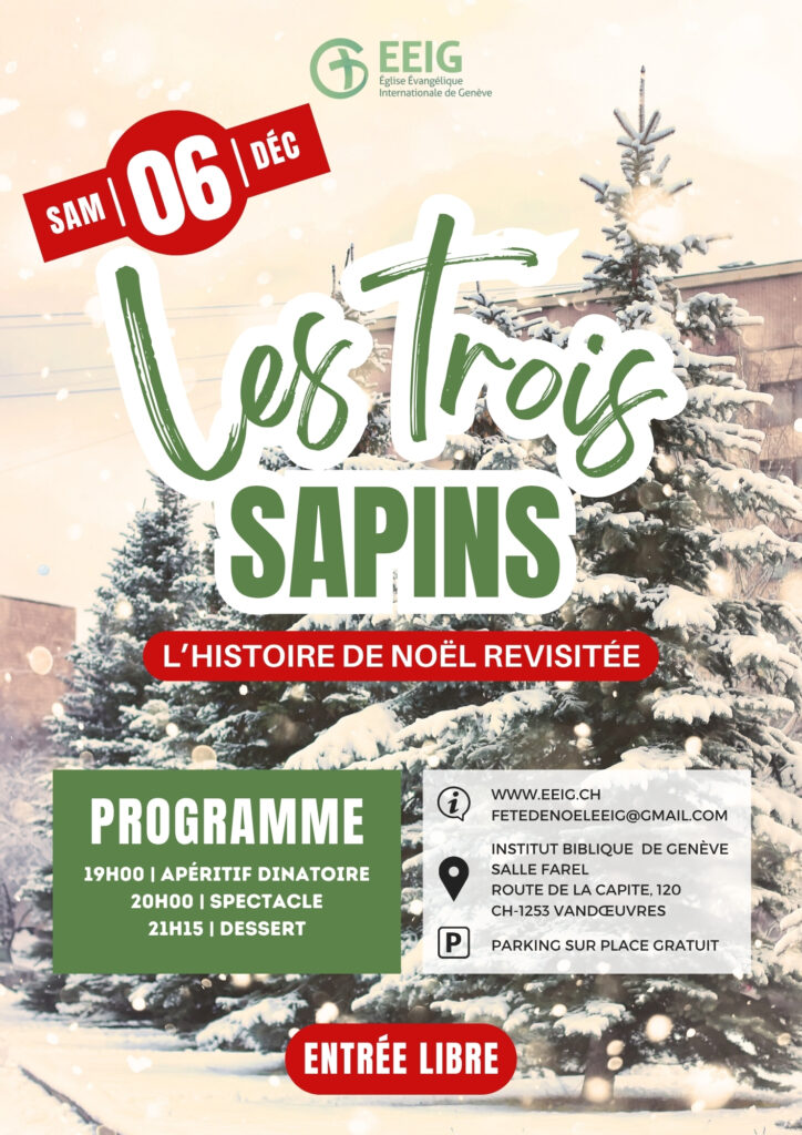 L’église évangélique internationale de Genève (EEIG) vous invite à une magnifique saynète de Noël, qui sera suivie d’un apéritif dinatoire !