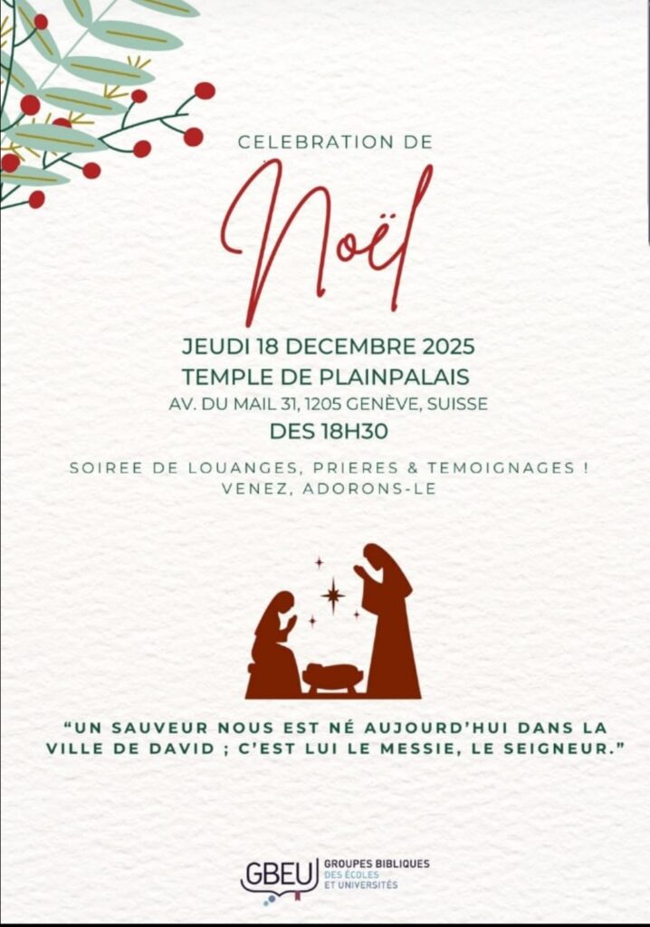 L’église Baptiste de Genève vous invite chaleureusement à un culte de Noël !